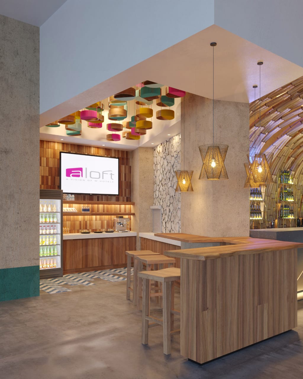 Las habitaciones contarán con techos de 3 metros de altura, lujosas camas de plataforma, Wi-Fi de alta velocidad de cortesía, televisores con pantalla LCD de 55 pulgadas, café emblemático sin cargo, artículos de tocador de Bliss Spa personalizados para Aloft y duchas con cabezales tipo lluvia.