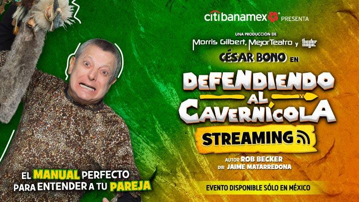 Hoy, César Bono, el gran César Bono avanza en la conquista del mundo del streaming el próximo sábado 19 de junio con una nueva transmisión del monólogo más exitoso y aplaudido en la historia del teatro en México: Defendiendo al cavernícola.